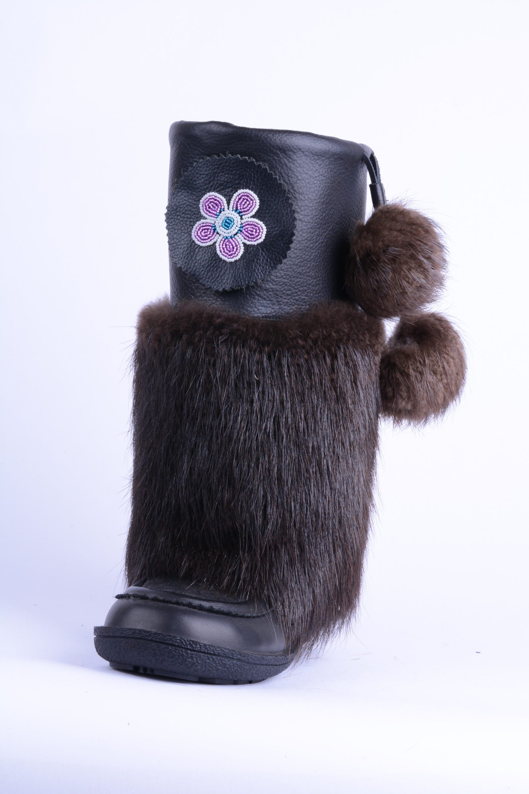 UTEIAU est un mukluk (mouklouk)classique fabriqué à la main au Canada et entièrement brodées par des femmes autochtones. Gardent les pieds parfaitement au chaud jusqu'à -35°C.