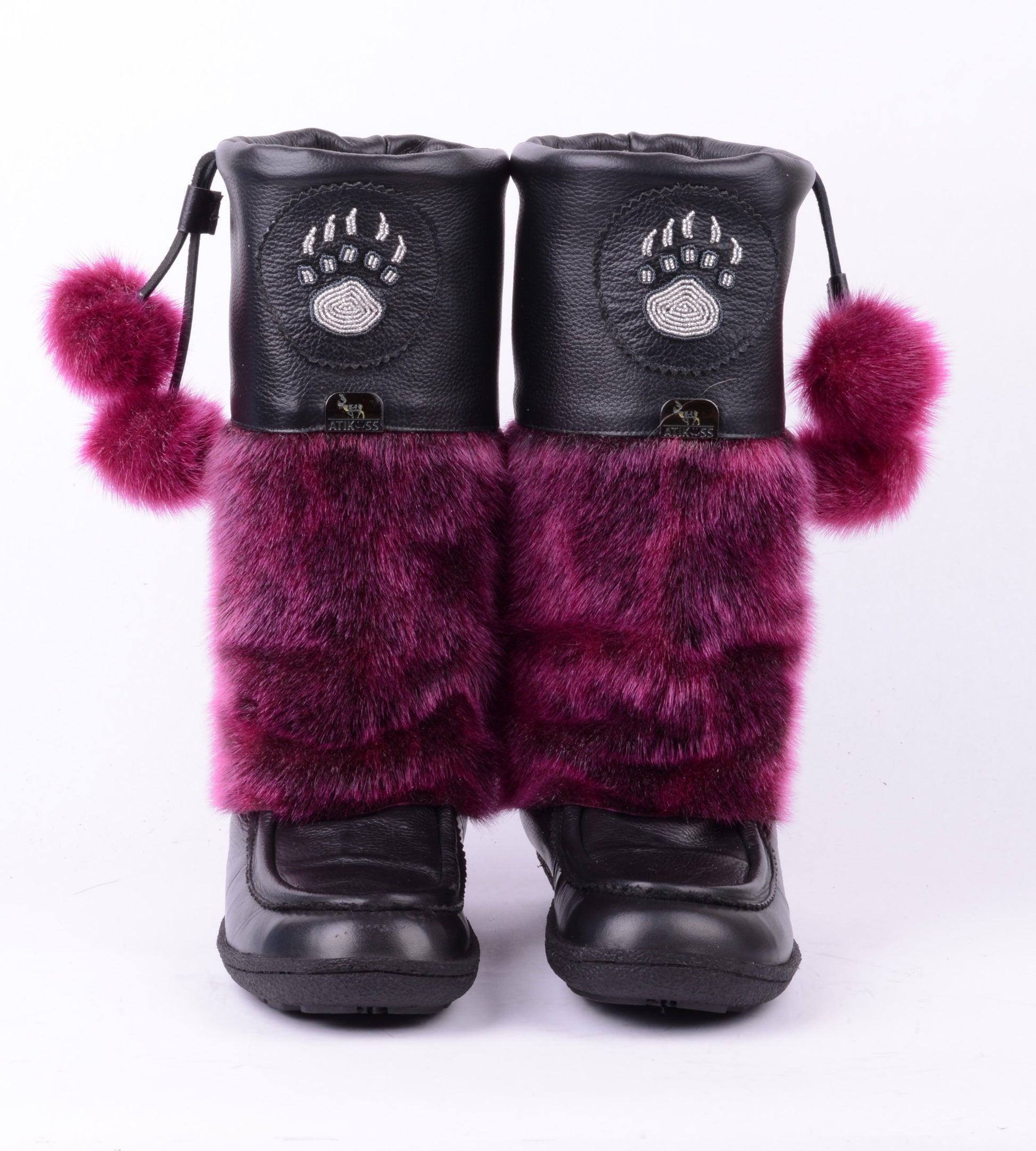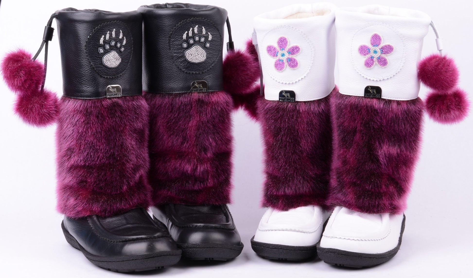 UTEIAU est un mukluk classique fabriqué à la main au Canada et entièrement brodées par des femmes autochtones. Gardent les pieds parfaitement au chaud jusqu'à -25°C.