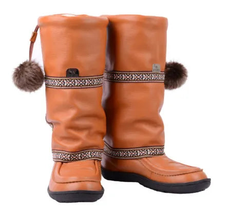Mukluk (mouklouk)classique fabriqué à la main au Canada et entièrement brodées par des femmes autochtones. Gardent les pieds parfaitement au chaud jusqu’à -35°C. la fabrication est fait dans une communauté du nom de Uashat situé au nord est du Québec